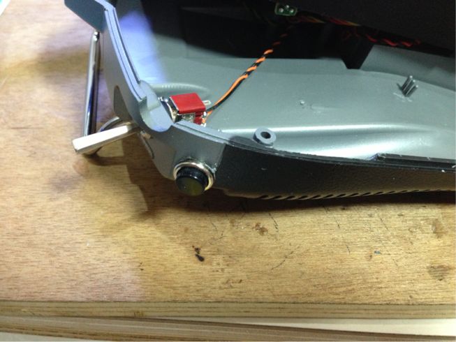トリガーの信号をラダーからとっていましたが、ラダー操作と一緒にスロットルも動かしてしまうので(ただ単に操縦が下手なだけ)ギヤSWと並行に押しボタンSWを割り込ませて見ました。