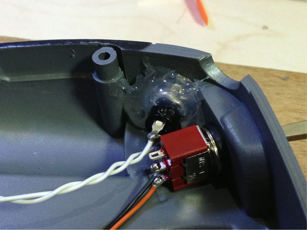 裏のスペースがギリギリでSW付属のナットが使えなかったので、ホットボンドで固定しました