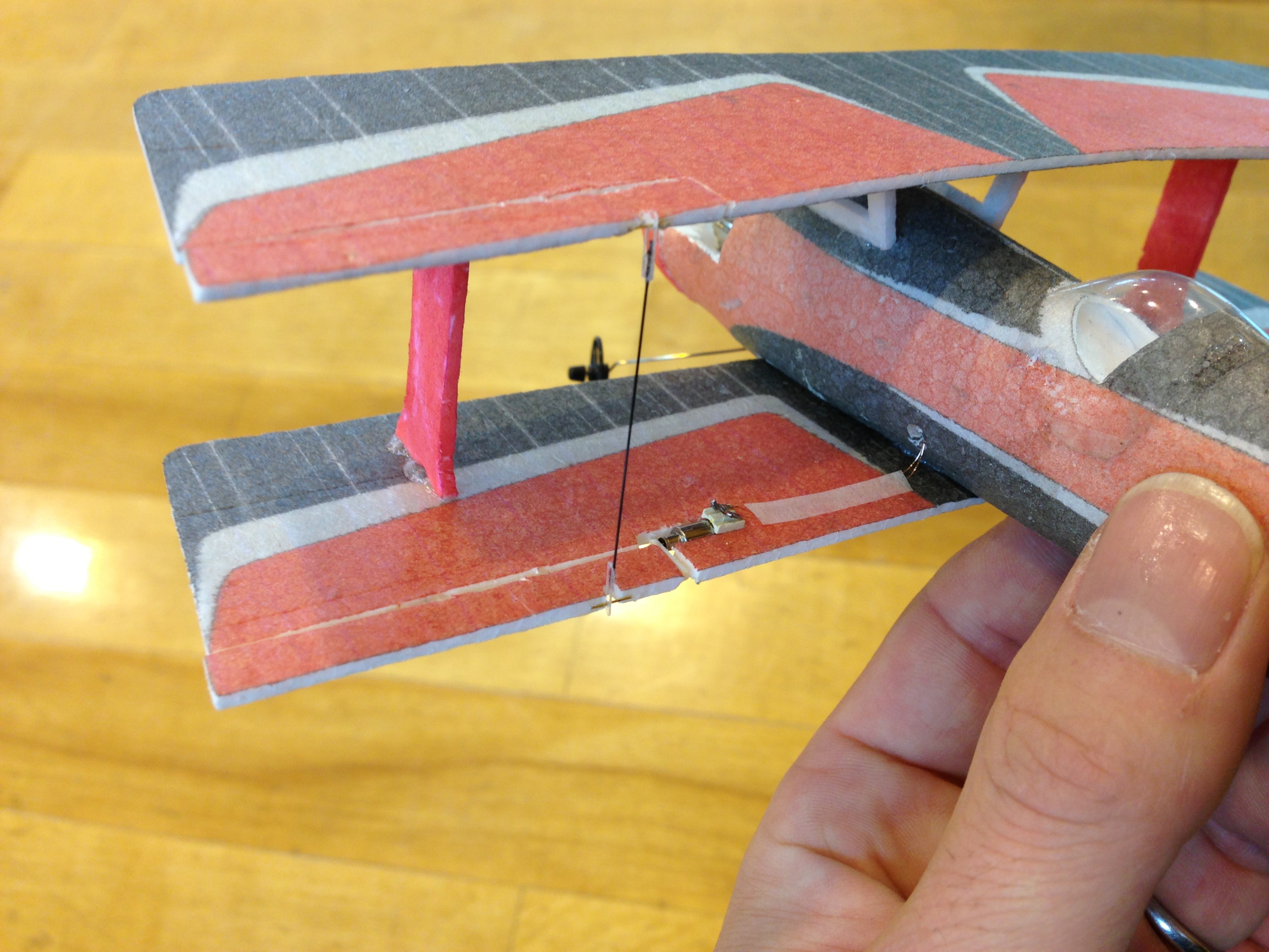 重心を後ろにずらすと滑走でくるくる回ってしまい離陸できない上に、手投げ発進でもダッチロールを繰り返してまともに飛ばせないので、滑空が良くなるように重心を下げても安定するよう少し改良?してみた