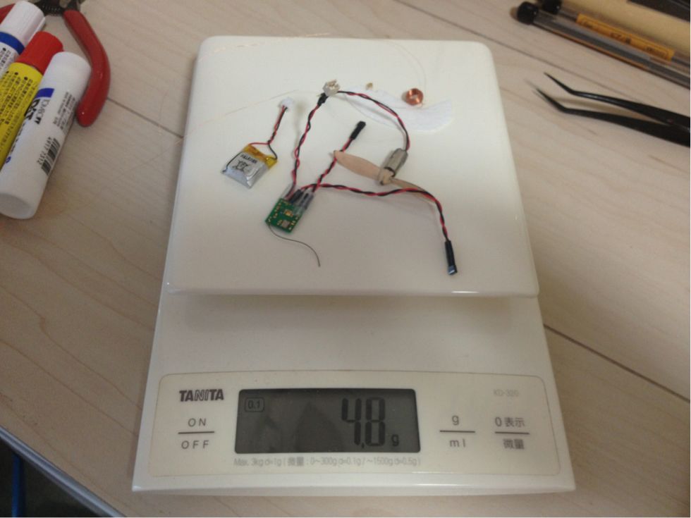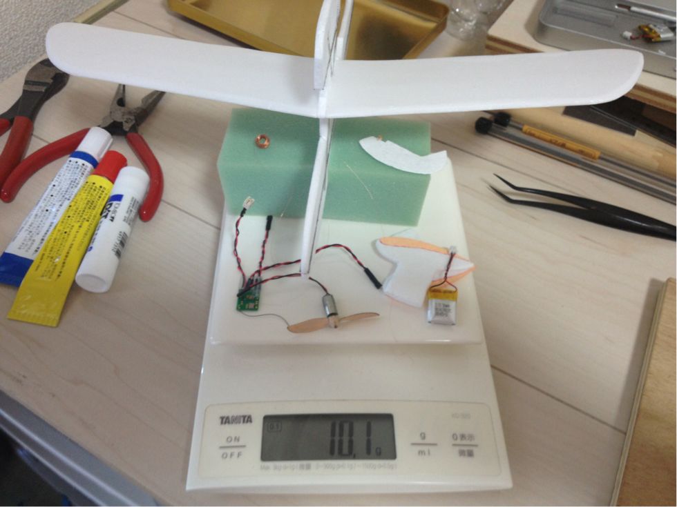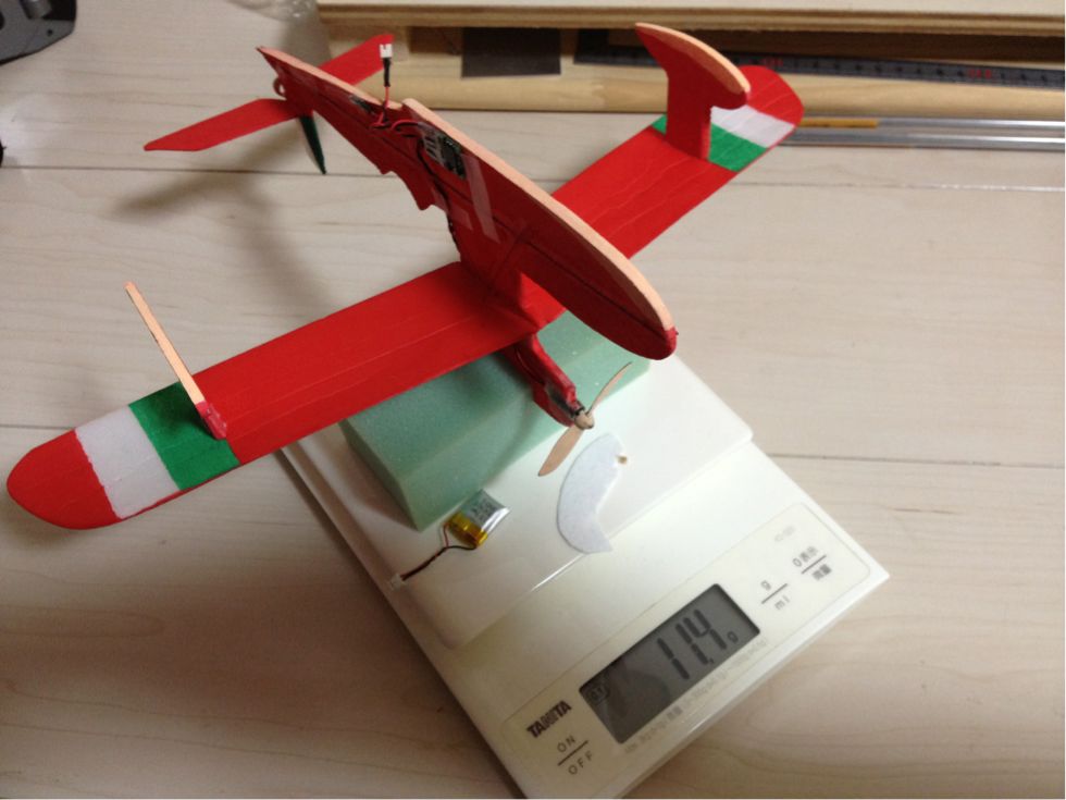 コグロさんは10gオーバーでも全然飛ぶよ!って言っていたので。それを信じて、明日はラダーを着けて完成させます。