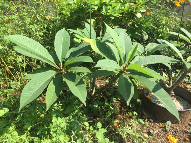 プルメリアは寒さに弱く冷え込んで霜が降りたりすると1発でやられてしまう危険があるので、気温が15℃を下回るとそろそろ家の中に取り込む準備をするのですが、仮住まいにすでに2鉢も入れさせてもらっているのでこれ以上プルメリアばかり中に入れられないので、遊歩道に直植えしていた一本はこのまま外で冬越しにチャレンジです。