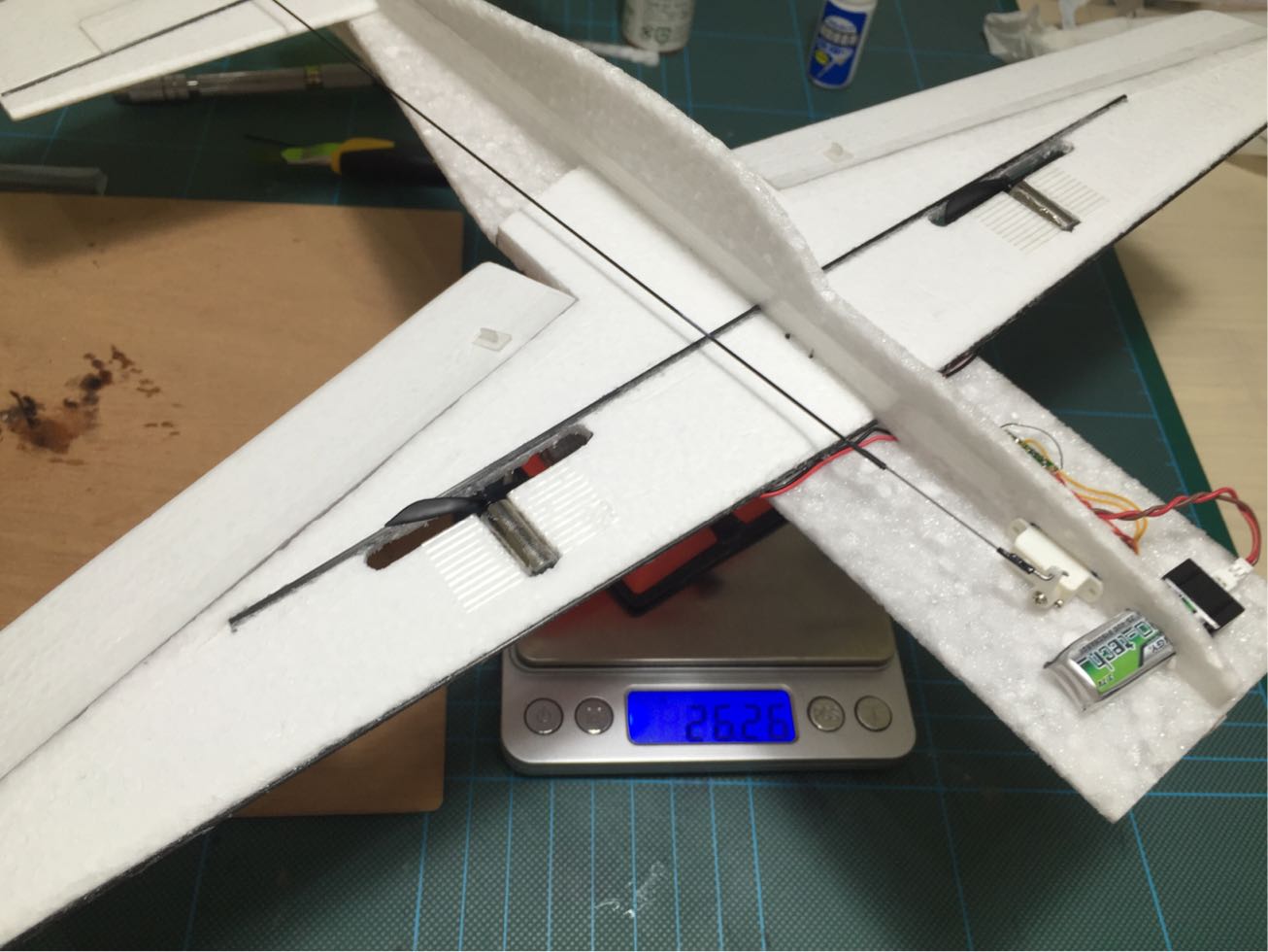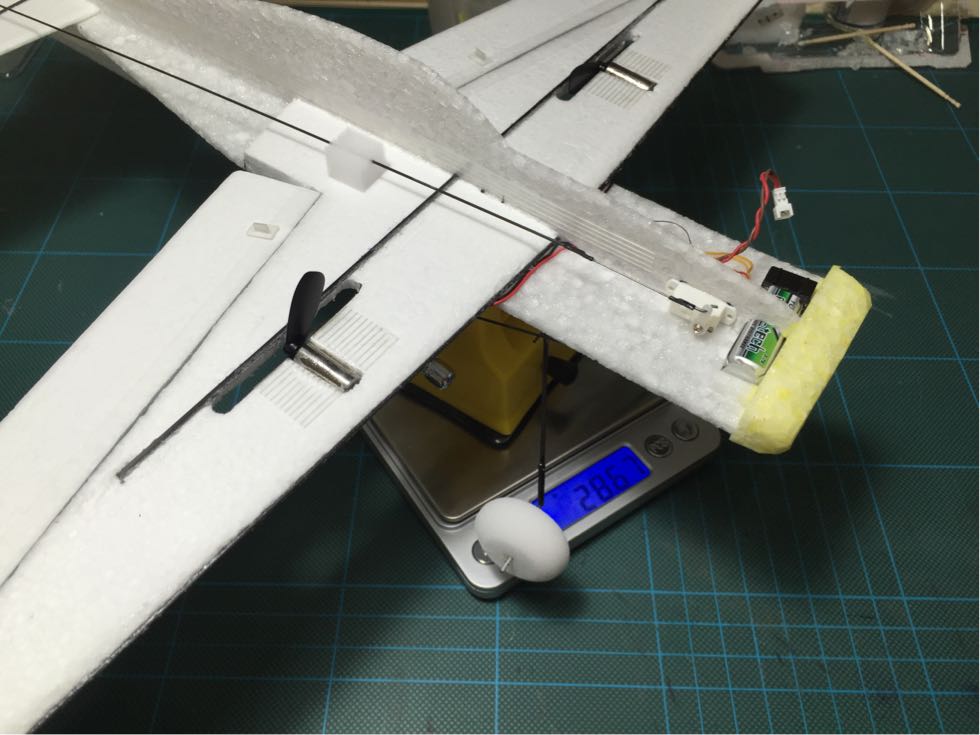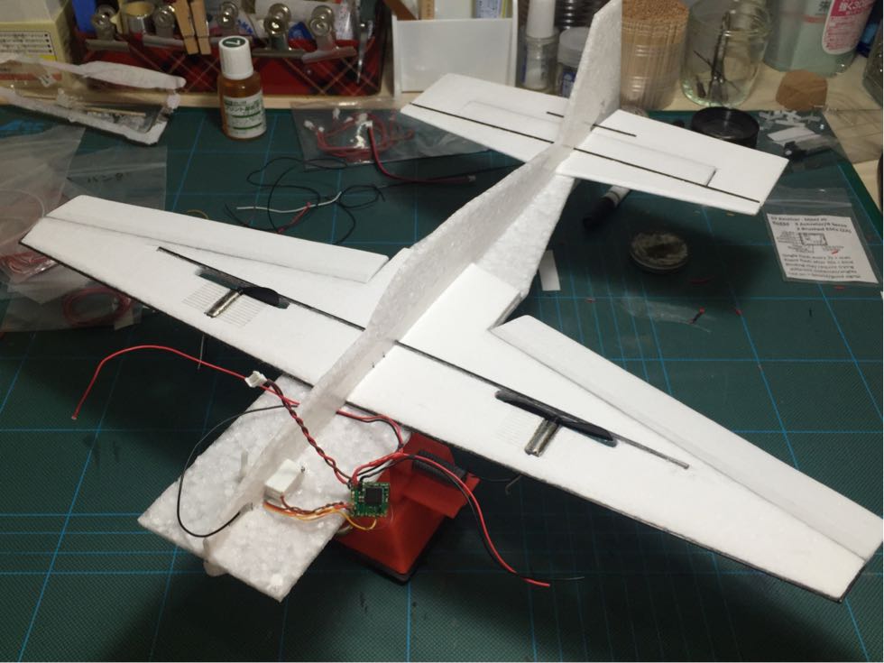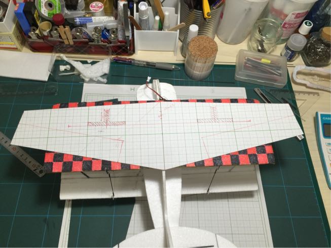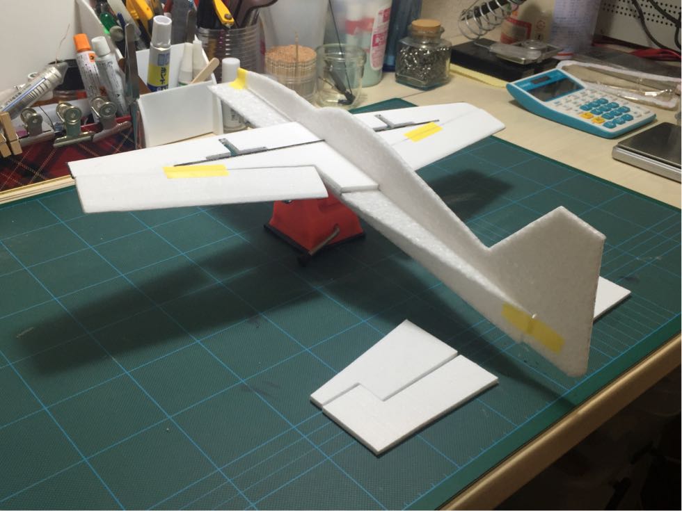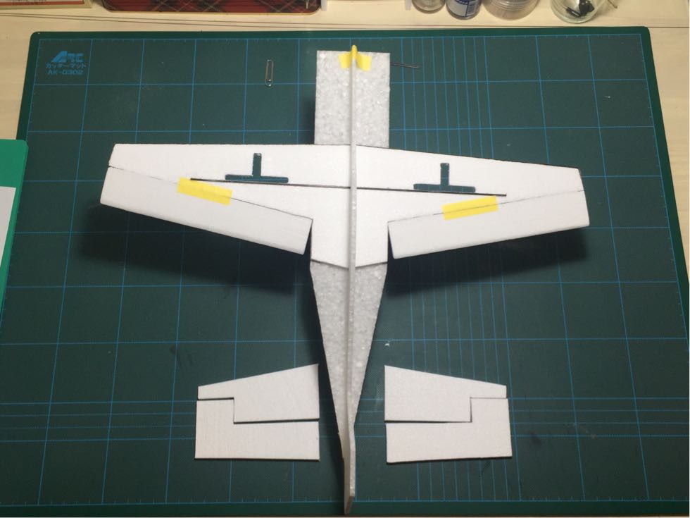 主翼と水平尾翼はある程度のコシが欲しかったので発泡で、胴体の縦横と垂直尾翼は強度と軽量化のためEPPにしました。