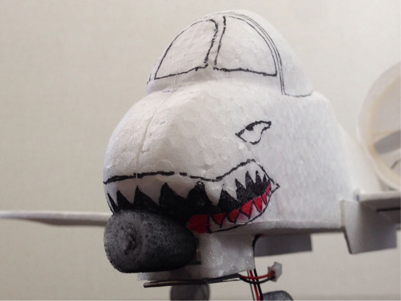 真っ白じゃ味気ないので、バンパー兼ガトリング砲を取り付けて、シャークマウスを描いてみる☆