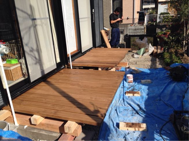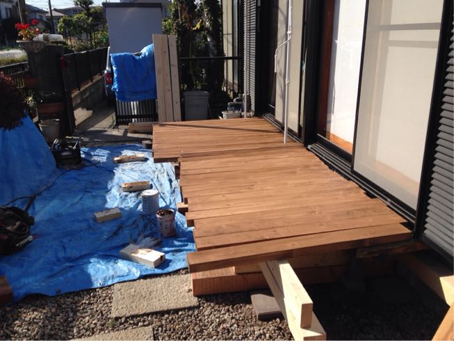 ようやく材料が集まってきたので、ウッドデッキの加工を始めました