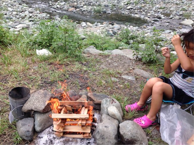いつもなら川に入って遊ぶのですが、仕事漬けで1度も水に入っていない今年はなんだか入水モードにならず、焚き火をしながら川で冷えた子供たちを待つ担当