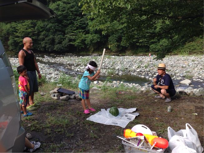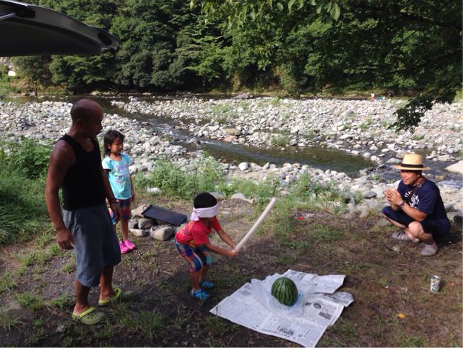 最後は夏恒例、スイカ割りで今年のバーベキューもおしまい