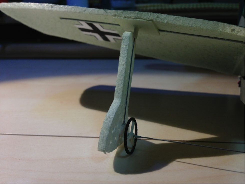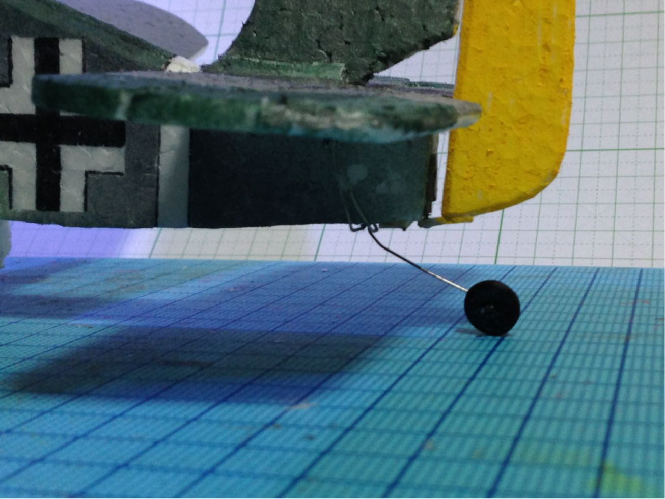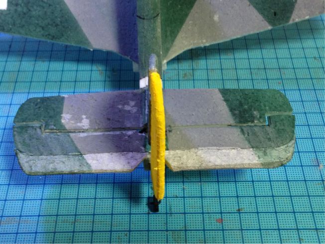 垂直尾翼を大型化し、直進性UP(なのか?)の為に後輪をカーボンロッドのみから、ピアノ線&スチレンペーパーでランディングギヤを作成