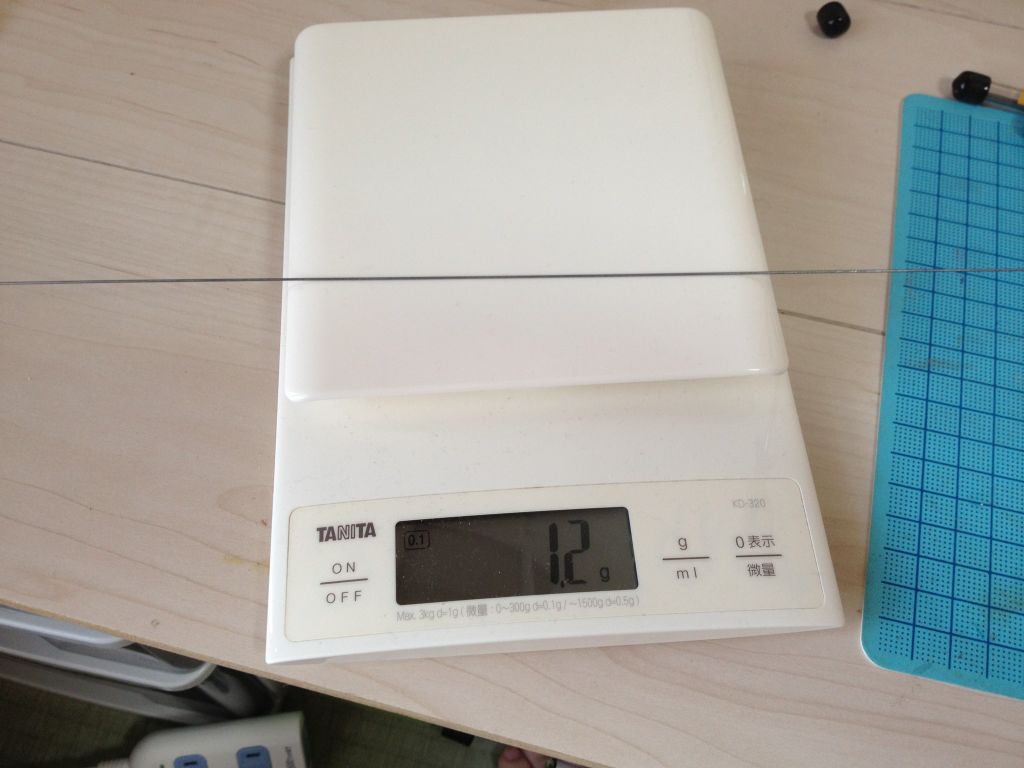 胴体に使用したピアノ線もカーボンロッドにかえれば1g以上の軽量化。